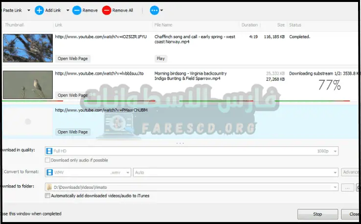 - يتيح لك تنزيل أكثر من مقطع فيديو في وقت واحد.