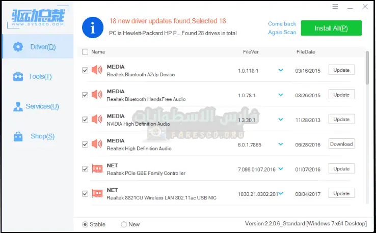 - التعرف التلقائي على التعريفات القديمة على الجهاز وتحديثها بنقرة واحدة فقط.