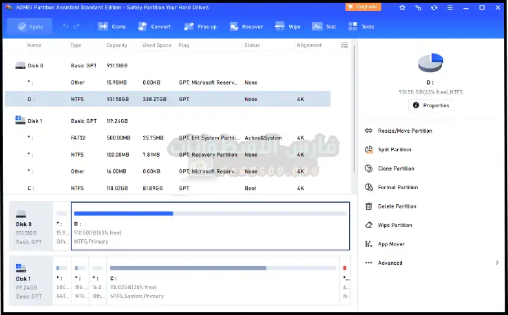 تحميل برامج تقسيم الهارد اعادة تقسيم الهارد بدون برامج بالنسبة للتنظيم بداخل البرنامج فإن البرنامج يتميز بكونه رائع للغاية من حيث التنظيم وذلك لأن كل الأدوات والإعدادات ستجدها بشكل مميز ورائع للغاية, وإن واجهت مشكلة تستطيع الإستعانة بالدعم أو بمنصة اليوتيوب حيث تتواجد فيديوهات لشرح طريقة الإستخدام وسوف نوضحها بالفعل في المقال.