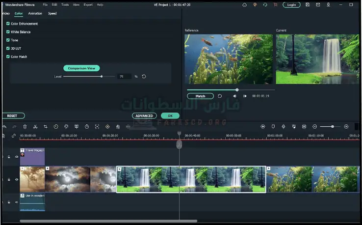 باستخدام هذا البرنامج، يمكنك إنشاء فيلم من خلال دمج سلسلة من المقاطع أو استخدام إمكانيات التحرير الفريدة لإنشاء مقاطع فيديو، بما في ذلك قص الأجزاء غير المرغوب فيها وإضافة نصوص بخطوط جميلة، بالإضافة إلى التحكم في حجم ولون النص. قم بتنزيل Filmora 10 مع تفعيل مدى الحياة. ولأنه يتضمن مجموعة من المؤثرات والفلاتر الجاهزة، فإن إحدى ميزاته البارزة هي القدرة على العمل بتقنية الشاشة الخضراء، مما يسمح لك بتغيير الخلفية وتحميل النتائج واحدة تلو الأخرى.
